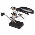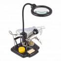 Держатель "третья рука" с лупой х3, подставка под паяльник, LED подсветка, стенд для припоя (ZD-10Y) REXANT служит главным образом при проведении паяльно-сборочных работ в электронике, ювелирном деле, сборке и ремонте для зажима мелких деталей в любом нужном положении, когда не хватает двух рук.