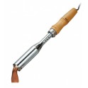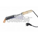 Электрический паяльник ПД 300Вт с деревянной ручкой и клинообразным жалом непрерывного нагрева предназначен для монтажной пайки и лужения оловянно-свинцовистыми припоями элементов радиоэлектронной аппаратуры и тонкостенных металлических изделий в производственных и бытовых условиях.