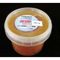 Пластиковый прозрачный контейнер содержит полкилограмма чистейшей сосновой канифоли. Насыщенный персиковый цвет говорит об отсутствии окисленных компонентов. Это благоприятно сказывается на всех сферах применения живичной канифоли.