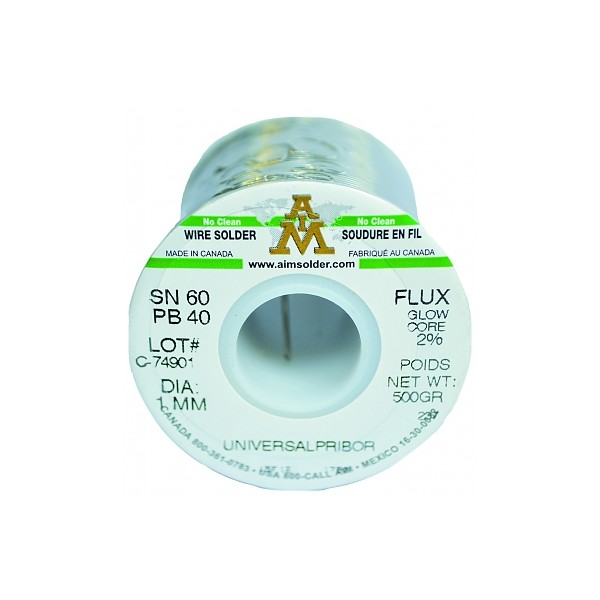 Припой трубчатый, Glowcore, AIM, Sn60Pb40, 1.0 мм, катушка 500 гр