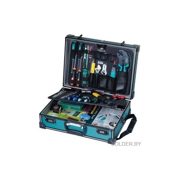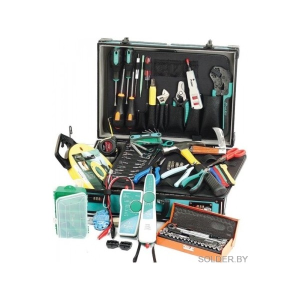 Универсальный набор для обслуживания компьютерных локальных сетей. Подходит для системных администраторов. В состав включены монтажные инструменты, кабельный тестер с генератором поиска поврежденного кабеля, инструмент для обжима различных коннекторов.