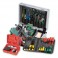 Профессиональный набор инструментов, разработанный для электриков. Набор поставляется в алюминиевом кейсе, и включает в себя различные плоскогубцы, отвертки, оборудование для пайки и распайки, а также другие полезные инструменты.