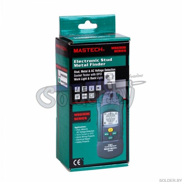 Mastech MS 6908 это многофункциональный прибор, включающий в себя большой набор возможностей. Предназначен для поиска металла, переменного напряжения, а так же скрытых конструкций. С его помощью вы сможете обнаружить винты, гвозди, саморезы, шпильки, иголки и другие металлические предметы на глубине до 30 мм, металлические трубы на глубине до 60 мм и напряжение на глубине до 75 мм.
