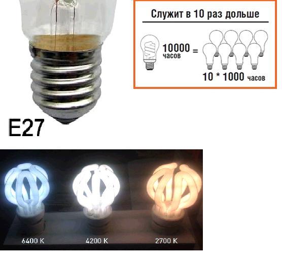 Энергосберегающая лампа,полуспираль,дневной свет 4200К,20W цоколь E27