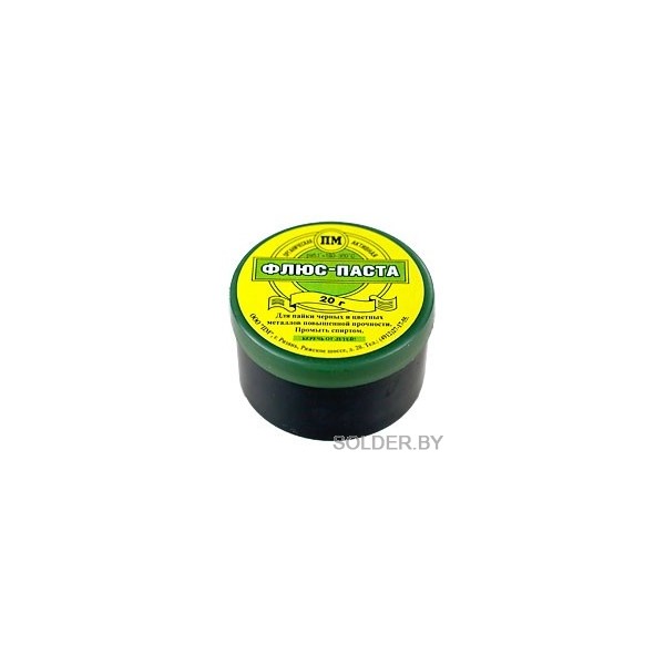 Баночка 20 г. Применяется для пайки медных электротехнических приборов при температуре 180–300°С.