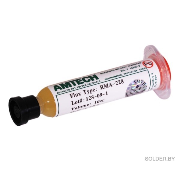 Флюс RMA-228 ― гелеобразный флюс специально разработан американской компанией Amtech для общих работ по доводке и доработке печатных плат и установки шариков припоя при монтаже BGA компонентов и mBGA.