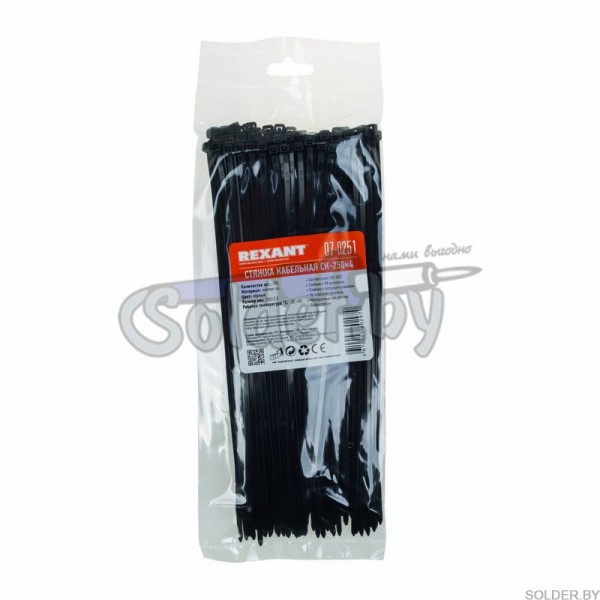 Хомут nylon 4.0 х 250 мм 100 шт черный REXANT арт. 07-0251