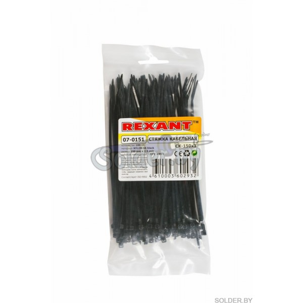 Хомут nylon 3.0 х 150 мм 100 шт черный REXANT арт. 07-0151