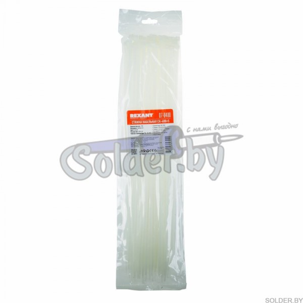 Хомут nylon 5.0 х 400 мм 100 шт белый REXANT арт. 07-0400