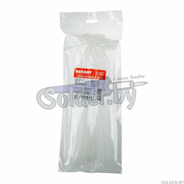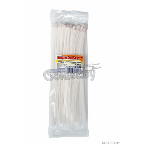 Хомут nylon 4.0 х 300 мм 100 шт белый REXANT арт. 07-0300