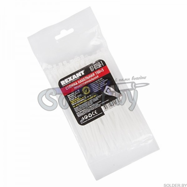 Хомут nylon 3.0 х 150 мм 100 шт черный REXANT арт. 07-0151