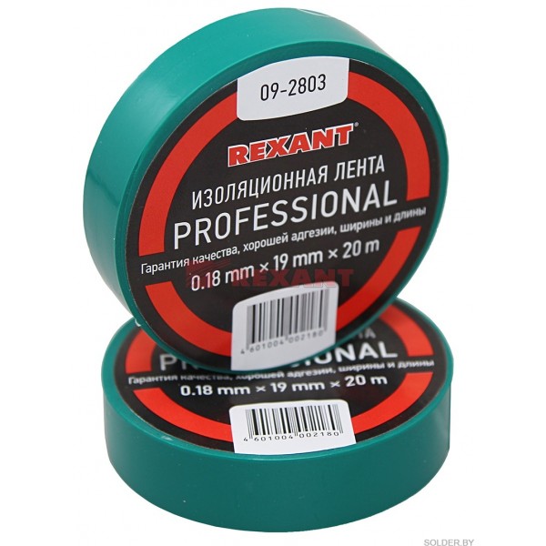 Изолента профессиональная 0.18 х 19 мм х 20м зеленая REXANT арт. 09-2803