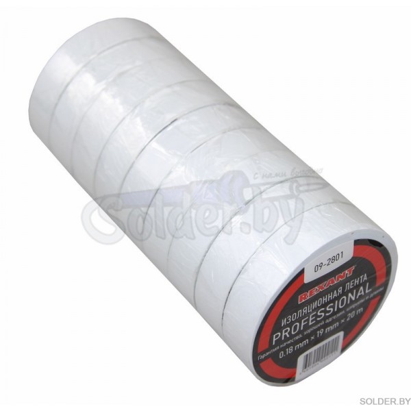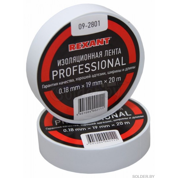 Изолента профессиональная 0.18 х 19 мм х 20м белая REXANT арт.09-2801