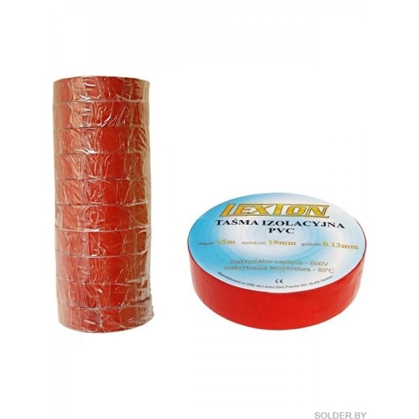 Лента изоляционная ПВХ LEXTON красная 25m/19mm