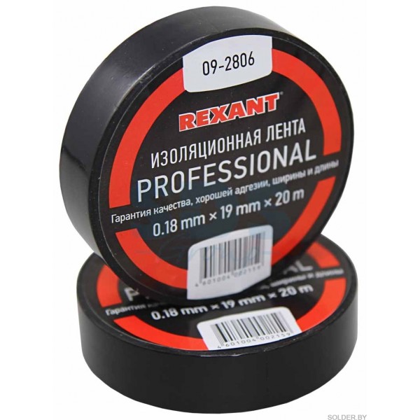 Изолента профессиональная 0.18 х 19 мм х 20м черная REXANT арт. 09-2806