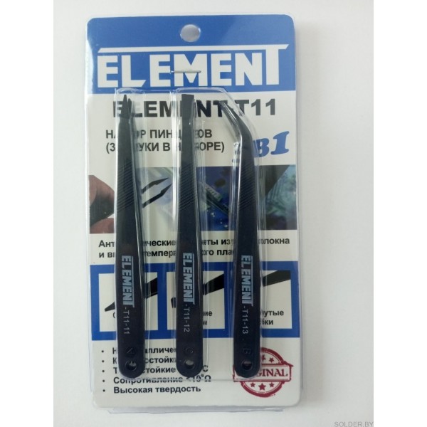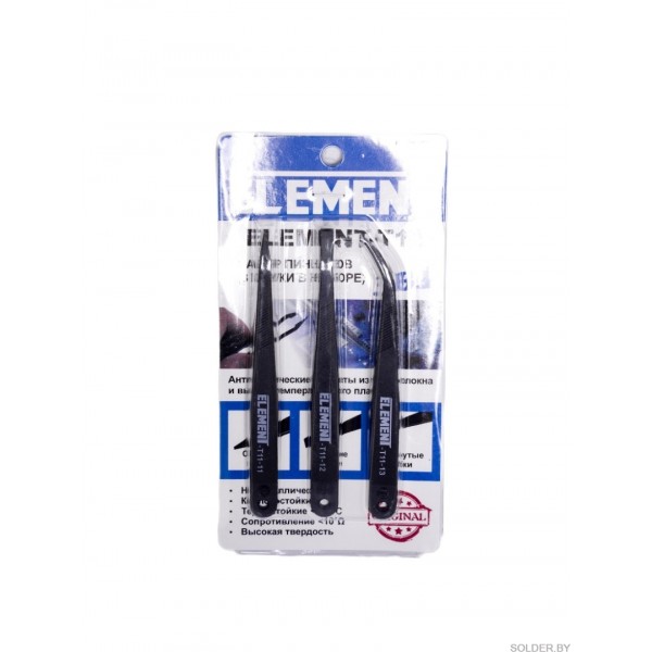 Набор пинцетов ELEMENT T-11 (3штуки в наборе) антистатические