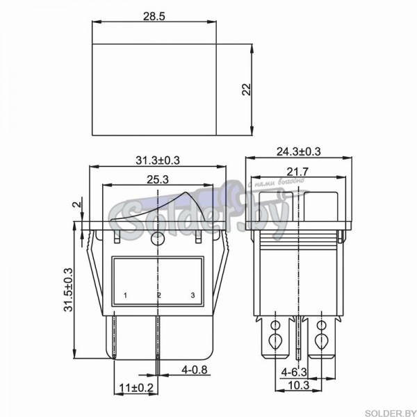 Выключатель клавишный 250V 15А (6с) ON-OFF красный с подсветкой ДВОЙНОЙ предназначен для коммутации электрических цепей переменного тока напряжением до 250В.