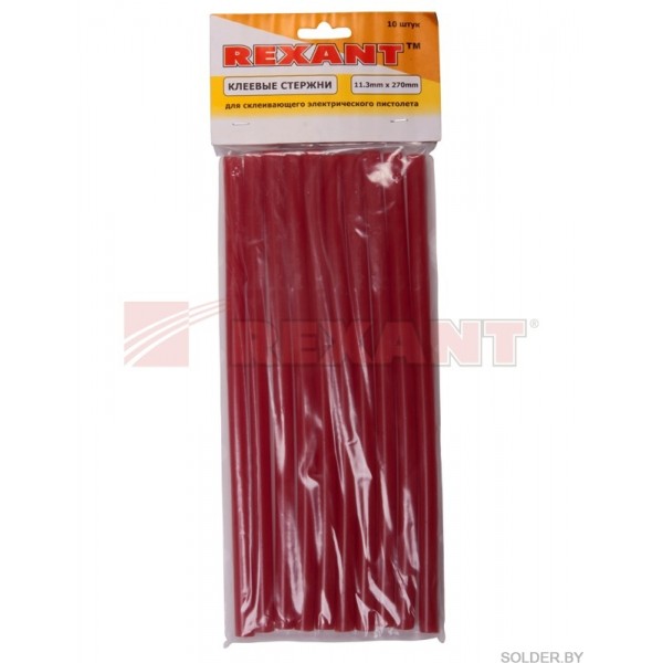 Клеевой стержень d=11.2 мм., L=270 мм., красный REXANT, упаковка 10 шт.