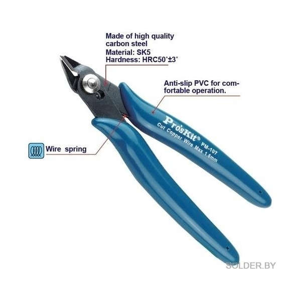 Мини кусачки ProsKit PM-107 прецизионные с защитной клипсой и эргономичными нескользящими рукоятками из термопластичной резины