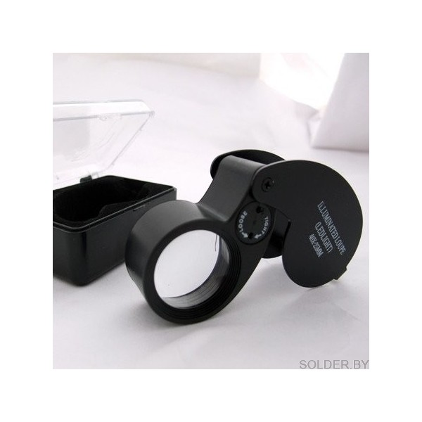 Складная лупа со светодиодной подсветкой, имеет минимальную массу и занимая минимум места не более брелока. Находясь всегда с вами она поможет рассмотреть мельчайшие подробности в любой обстановке, будь, то рабочие моменты или покупка ювелирных украшений.