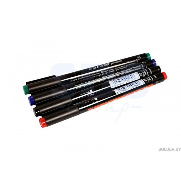 - Маркер E-140 permanent 0.3мм (для пленок и ПВХ) набор:черный,красный,зеленый,синий предназначен для нанесения постоянных, практически не удаляемых надписей на различные поверхности, которые не смываются водой, устойчивы к выгоранию и истиранию.
