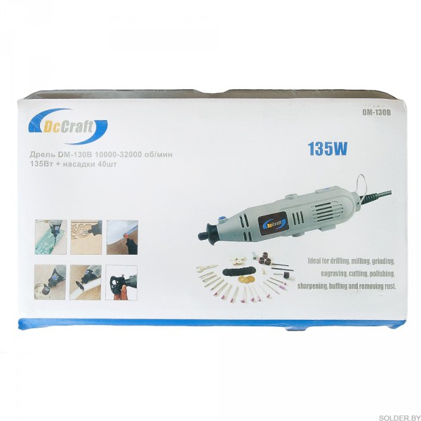 Дрель DM-130B с гибким валом 10000-32000 об/мин 135Вт + насадки 40шт