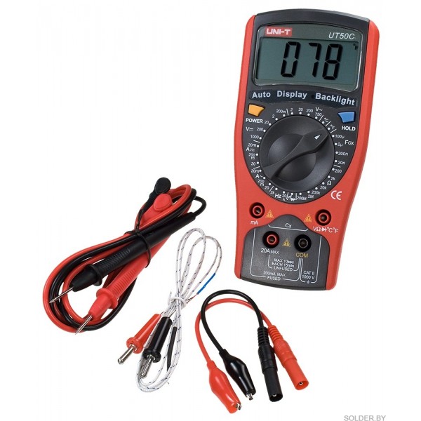 Широкий функционал мультиметра UT50C позволяет обходиться без других вспомогательных устройств. Прибор оснащен функцией Data hold, и зафиксировав результат измерений, вы в любое время сможете считать полученный значение. Прибор изготовлен из высококачественных материалов. Калибровка и тестирование приборов произведено под контролем компании REXANT INTERNATIONAL.