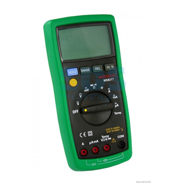 Все приборы серии MS8217 измеряют постоянное и переменное напряжение, а так же постоянный и переменный ток, сопротивление в цепи, емкость, частоту и даже температуру.