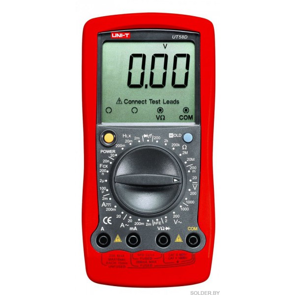 UT58D- это профессиональный мультиметр с современный и эргономичным дизайном. Предназначен прибор, для измерений постоянного и переменного напряжения, сопротивления, постоянного и переменного тока. Кроме того он имеет функцию измерения электрической емкости, а так же с его помощью вы сможете тестировать диоды и проводить прозвонку целостности цепи.