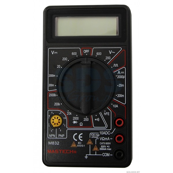 Мультиметр измеряет постоянный и переменный ток, постоянное и переменное напряжения, сопротивление и коэффициент усиления биполярных транзисторов (h21). Так же с помощью прибора можно прозванивать полупроводниковые диоды, а встроенный генератор 50 Гц будет полезен при испытании радиотехнических устройств.