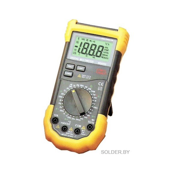 Напряжение: до 1000 В. Ток: до 10 А. Сопротивление: до 20 МОм. Температура: -20°C…1000°C. Прозвонка соединений