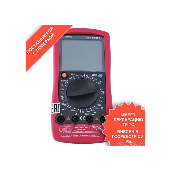 Цифровой мультиметр ZEN-MM20-7 - 3 1/2 разрядный, со стабильной работой, современного дизайна, высоконадежный измерительный прибор. Мультиметр имеет встроенный АЦП с двойным интегрированием и полную защиту от перегрузок.