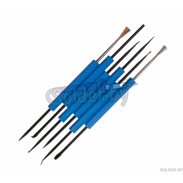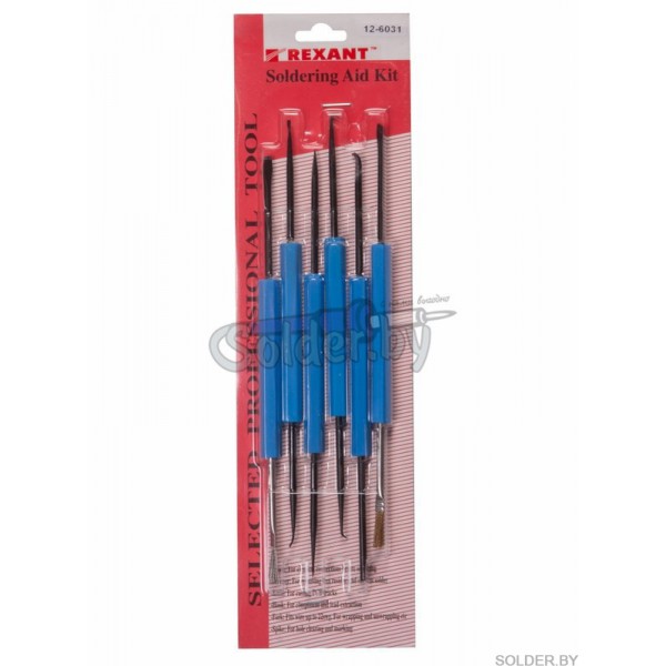 Набор для пайки (6 предметов) CT-3616 (ZD-151) REXANT предназначен для монтажных и ремонтных работ с радиоэлементами на платах, в корпусах аппаратуры, в часовых механизмах и т.п. Используется в электронике, моделировании и ювелирном деле. Ручки из качественной пластмассы не растворяются в отмывочных жидкостях. В набор входит: