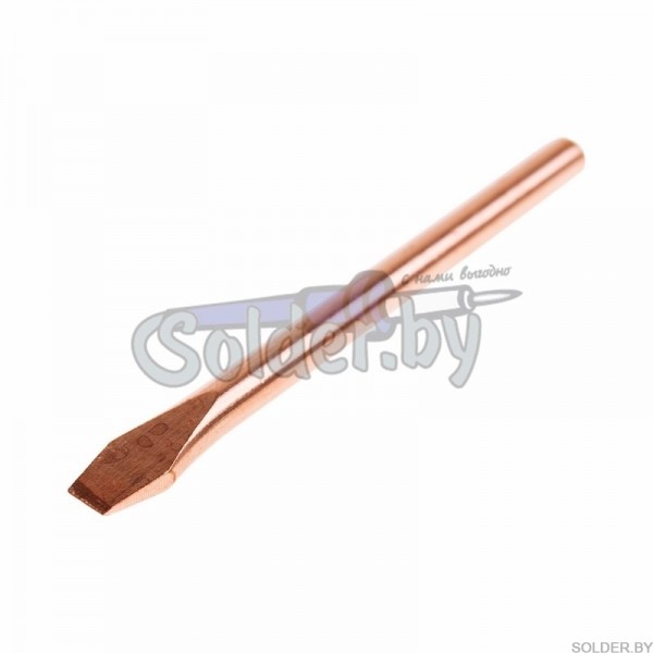 Жало медное представляет собой цилиндрический стержень, имеющий с одного конца один из множества типов форм. Медь, это идеальный материал для изготовления паяльного жала с точки зрения теплопроводности.