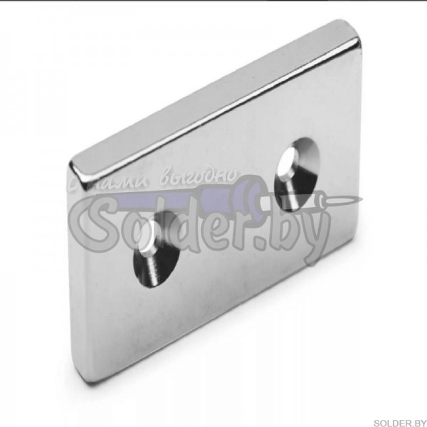 Неодимовый магнитный прямоугольник 35х15х3 мм с двумя зенковками 8х4 мм(упаковка 1 шт.) арт. 72-3703
