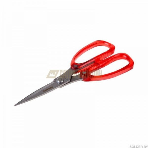 Ножницы универсальные REXANT идеально подходят для резки кожи, резины, картона, пластика, гофры, медных проводов, кабеля.