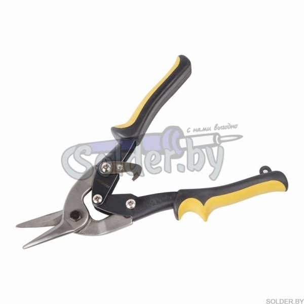 Ножницы по металлу прямые 260 мм PROconnect предназначены для прямого реза и используются для резки металла толщиной до 1,2 мм, а также нержавеющей листовой стали толщиной 0,7 мм. Удобные рукояти дают возможность использовать инструмент длительное время, с удобством для рук. Для удобства хранения и транспортировки имеется запорный механизм, который удерживает режущие кромки ножниц в закрытом положении