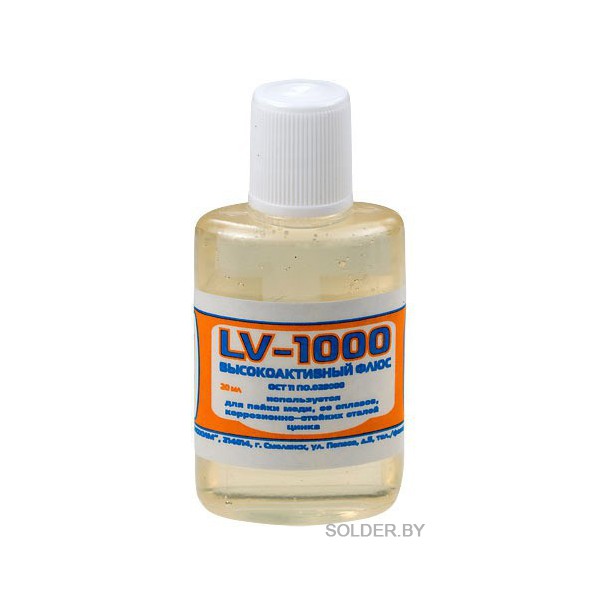Высокоактивный флюс "LV1000" 30мл (пластик) Используется для пайки меди, её сплавов, коррозионно стойких сталей цинка. Для сильноокисленных поверхностей в т.ч. загрязнённых, необезжиренных, оксидированных материалов.