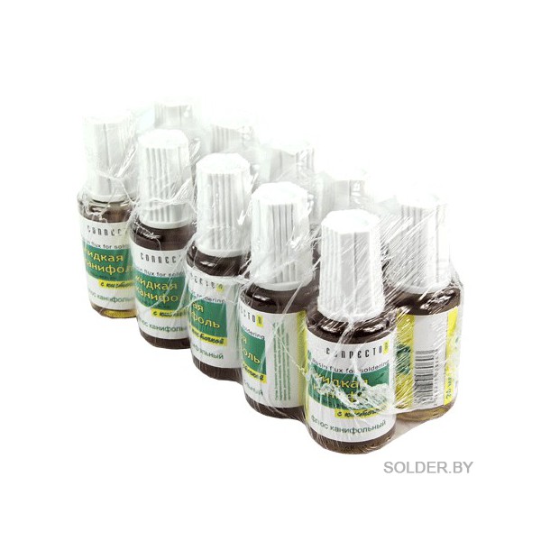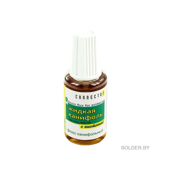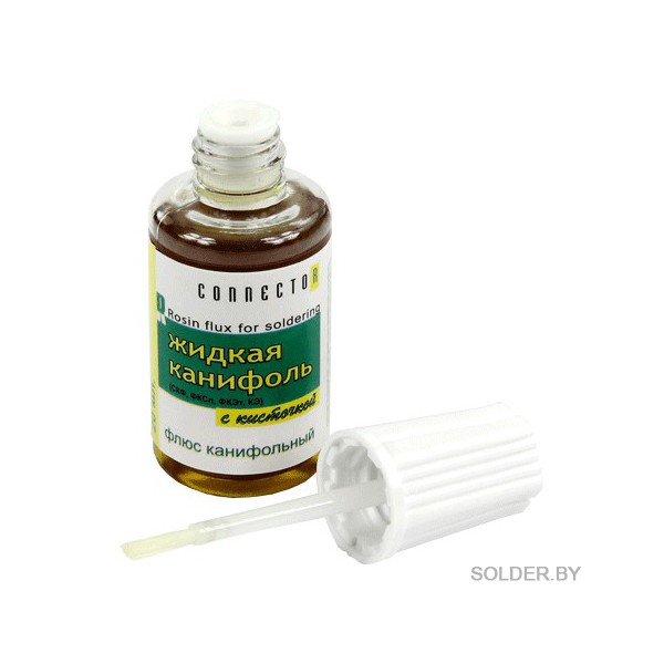 Жидкая канифоль - традиционный безопасный флюс для пайки. Другие название флюса: СКФ, ФКСп, ФКЭт, КЭ, Канифольный флюс. Удаление остатков можно производить с помощью спирта, растворителя а лучше специальным средством "Растворитель канифоли". Если нет специальных требований к чистоте поверхности, то удаление флюса после пайки не обязательно.