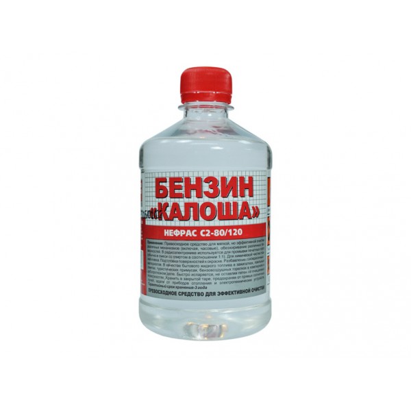 Бензин-растворитель "Калоша" (Галоша) изготавливается по ТУ 38.401-67-108-92 Применение: превосходное средство для мягкой, но эффективной очистки различных механизмов (включая, часовые), обезжиривание различных поверхностей. В радиоэлектронике используется для промывки печатных плат (обычно в смеси со спиртом в соотношении 1:1). Для химической чистки тканей и меха. Для подготовка поверхностей к окраске. Для разбавление лакокрасочных материалов. В качестве бытового жидкого топлива в зажигалках, паяльных лампах, туристических примусах, бензовоздушных горелках в ювелирном и зубопротезном деле. Быстро испаряется, не оставляя пятен на очищаемых поверхностях. Хранить в закрытой таре, предохраняя от прямых солнечных лучей, вдали от приборов отопления и электротехнических устройств.