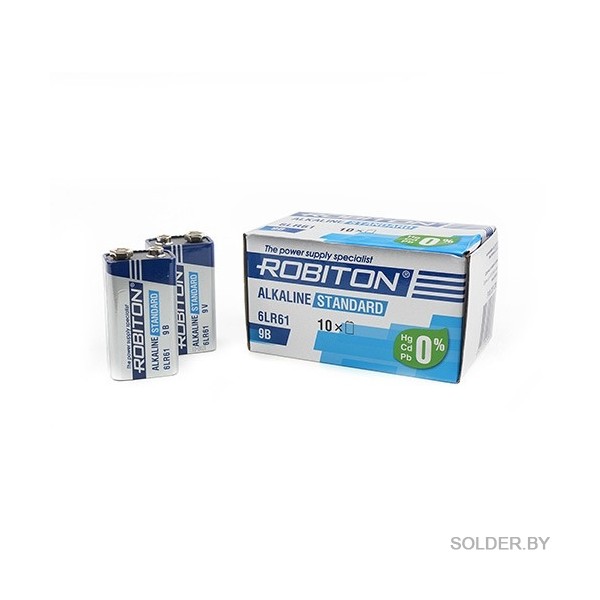 Элемент питания ROBITON STANDART 6LR61,BULK 10 (уп. 10шт.) арт БЛ13986
