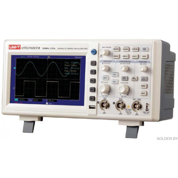 UTB-TREND 722-100-6 — настольный двухканальный цифровой осциллограф, выпускаемый компанией UNI-Trend Group Limited, с полосой пропускания 100 МГц, частотой дискретизации 1 Гвыб/с и временем нарастания сигнала менее 3,5 нс. Осциллограф оснащен большим цветным LCD дисплеем с диагональю 7″ и разрешением 800 × 480 пикселей, что делает его удобным в работе. Прибор имеет 3 режима запуска — по фронту, по длительности импульса и по чередованию сигналов. Осциллограф оснащен встроенным USB разъемом для подключения к внешним устройствам.