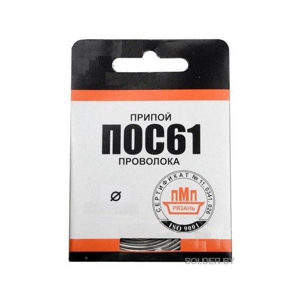 Припой-катушка 50гр. ПОС-61 д.1,0мм без канифоли