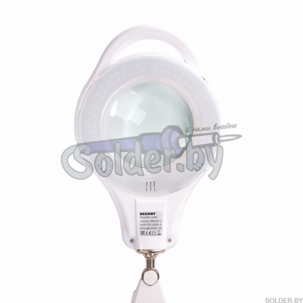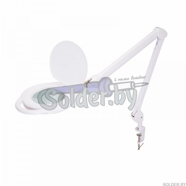 Лупа 5Х на струбцине КРУГЛАЯ с подсветкой 96 LED, ТЕПЛЫЙ и ХОЛОДНЫЙ СВЕТ белая REXANT арт. 31-0535
