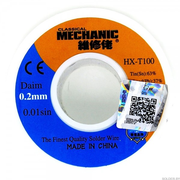 Припой-катушка Mechanic 0,2мм 55г HX-100 Sn63Pb 37