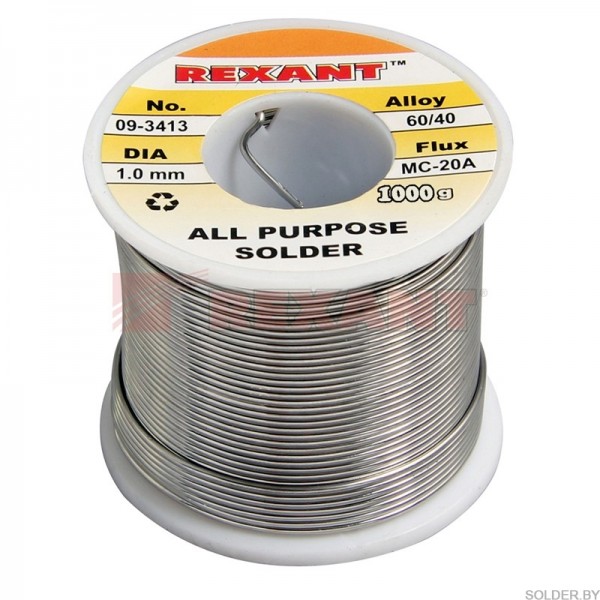 Припой с канифолью 1000 гр. d=1.0 мм (Sn60 Pb40 Flux 2.2%) REXANT