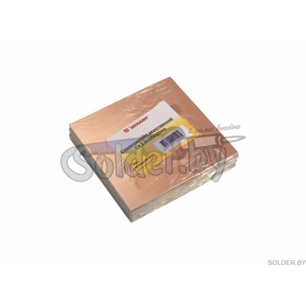 Стеклотекстолит двухсторонний СФ1.5-2-0.35 100х100мм REXANT предназначен для использования в электро- и радиотехнике, для механического и электрического соединения различных электронных компонентов. Представляет собой композицию стеклоткани и связующего материала на основе эпоксидных смол, а также с двух сторон покрытый медной электролитической, гальваностойкой фольгой. Листовой текстолит служит основой для изготовления печатных плат. Благодаря своему составу из стеклоткани он отличается высокой механической прочностью при сжатии и высокой ударной вязкостью. Лист текстолита хорошо поддается любой механической обработке: резание, сверление и т.д. Эксплуатация изделия, в качестве электроизоляционного материала, должна быть в условиях нормальной относительной влажности атмосферы и при частоте тока 50Гц. Особенность изделий из стеклотекстолита - небольшой вес. Основные характеристики: - рабочий температурный диапазон: от -65℃ до +105℃; - удельное сопротивление: 107 Ом/м; - толщина фольгированного слоя: 35 мкм; - вес изделия, гр.: ...; - габаритный размер: 1.5х100х100мм.