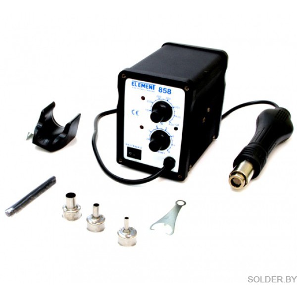 Паяльный фен ELEMENT 858 позволяет сделать удобным и комфортным рабочее место оператора, благодаря широкому спектру функций, современному дизайну, небольшим размерам, и удобному расположению регуляторов на рабочей панели.