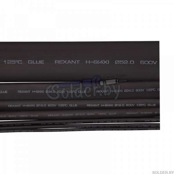 Клеевая 6.0 / 1.5мм (4:1) 1м термоусадка черная REXANT состоит из полиолефина с нанесенным клеем на внутреннюю часть трубки. Диаметр трубки до усадки – 6.0 мм, после усадки – 2.0 мм. Трубки поставляются в нарезке по 1 метру.