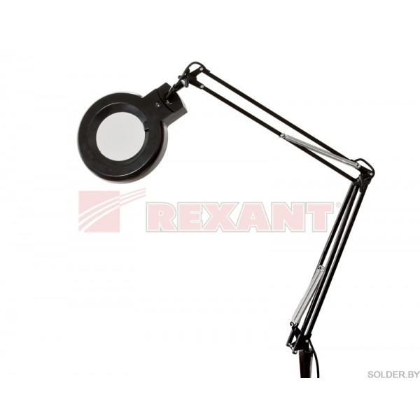 Лупа на струбцине круглая настольная 3Х с подсветкой, черная REXANT